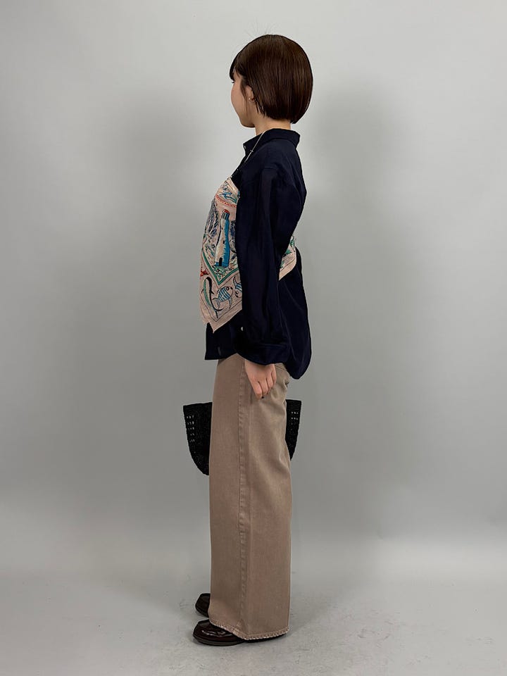 さらりとやわらかいリネン、セルロース素材。リネンの張りとセルロースの落ち感があり、形も綺麗です◎