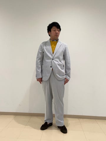 着心地:ソフトな生地感で春夏も穿きやすい仕様。シャツスタイル、ジャケパンどちらにもオススメ。