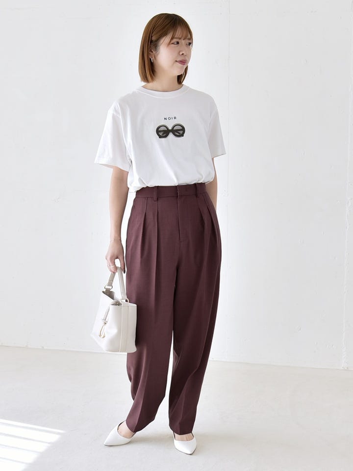 サイズ感:着丈はヒールでもスニーカーでもバランス良く着られる長さ。ウエストはTシャツをインして若干余裕があります。