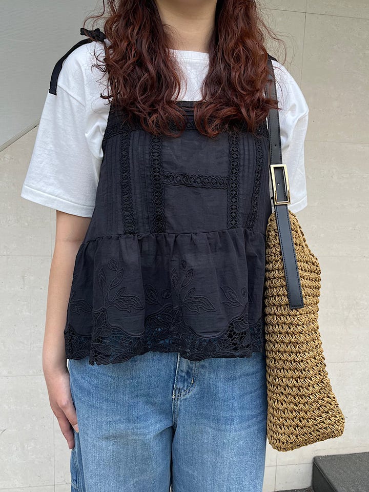〔ONE SIZE〕SHIPS any:〈手洗い可能〉コットン レース ヘム キャミソール