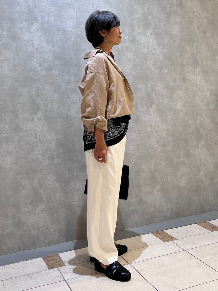 着用感 : 極端に薄手ではないのでアンダーの透けも気になりません。裾丈も補正無しで良いです。