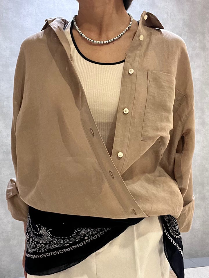 着用感 : リネン素材で軽くサラッと着用出来ます。