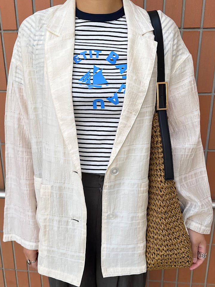 〔ONE SIZE〕SHIPS any:〈手洗い可能〉シアー チェック ルーズ テーラード シングル ジャケット