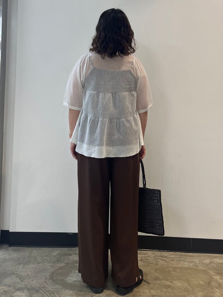 着用アイテム:麻調ウエストリボン インタックイージーパンツ
