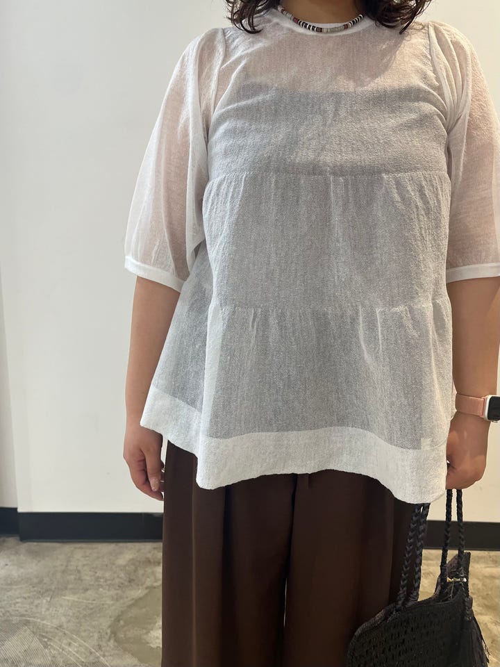 〔ONE SIZE〕〈手洗い可能〉麻混 シアー ティアード ショート スリーブ プルオーバー