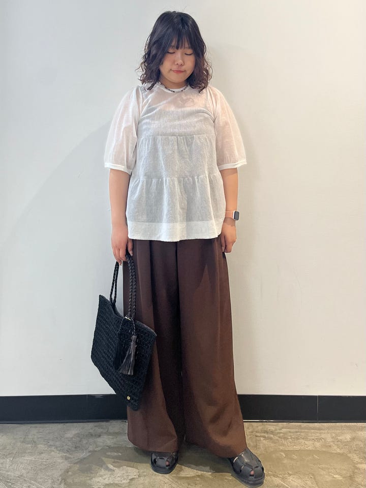 ワイドパンツなのでTシャツをインして履くだけでも足元にボリュームが出て可愛いです。