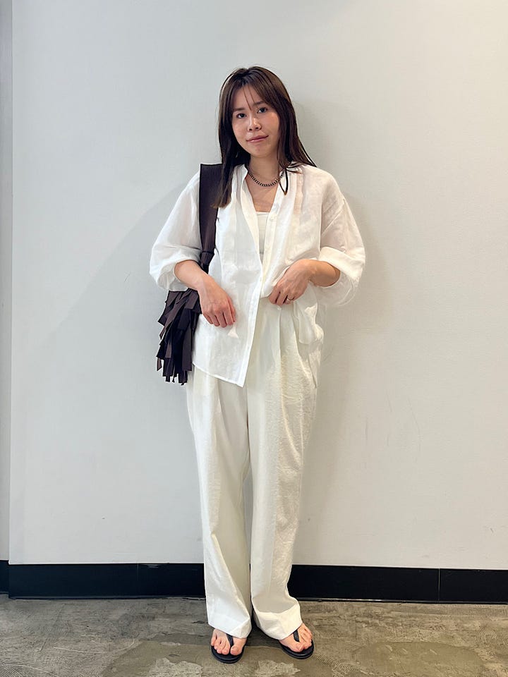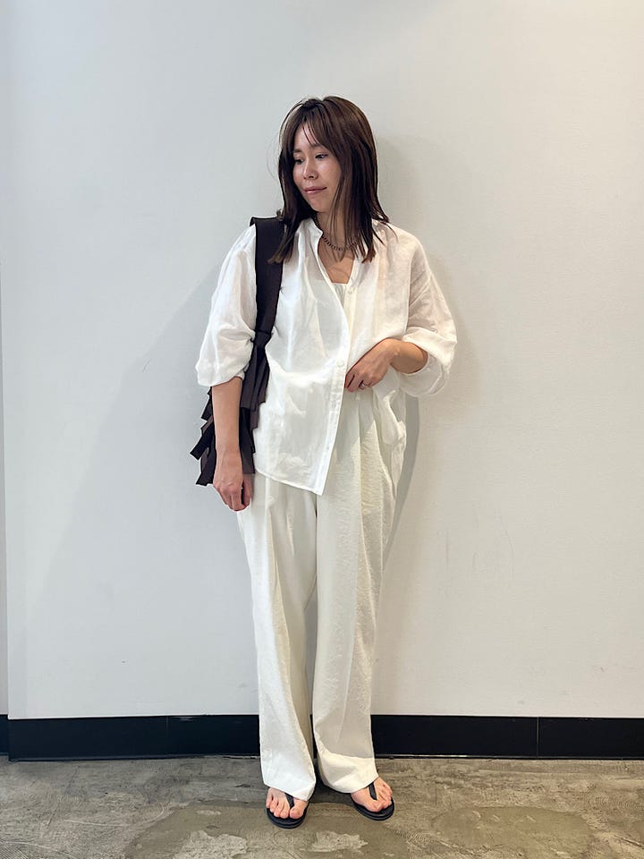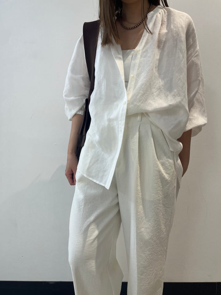 〔ONE SIZE〕《一部追加予約》〈手洗い可能〉IMPERIAL LINEN 混 バンドカラー スキッパー シャツ