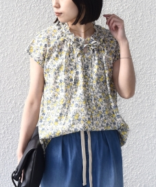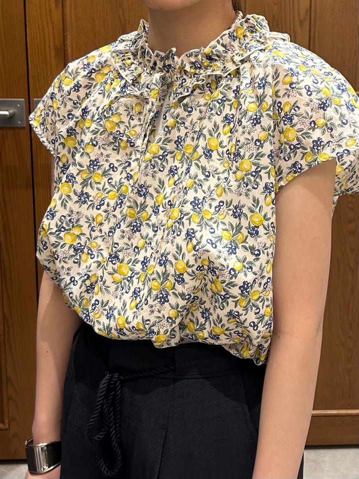 〔ONE SIZE〕SHIPS Colors:〈手洗い可能〉フルーツ プリント フリルネック ブラウス◇