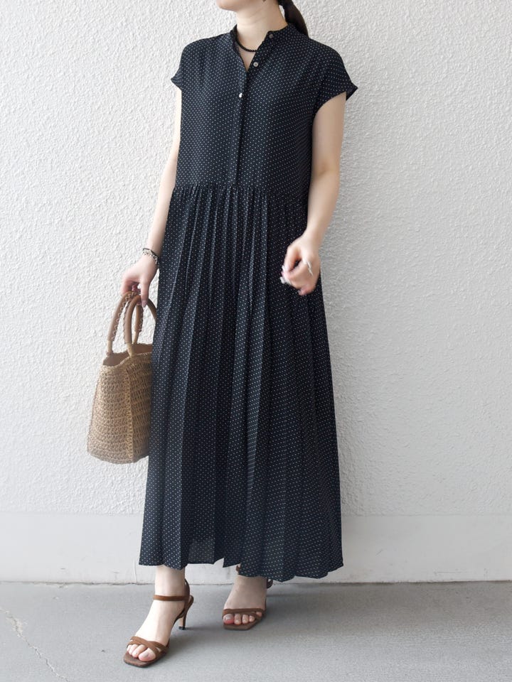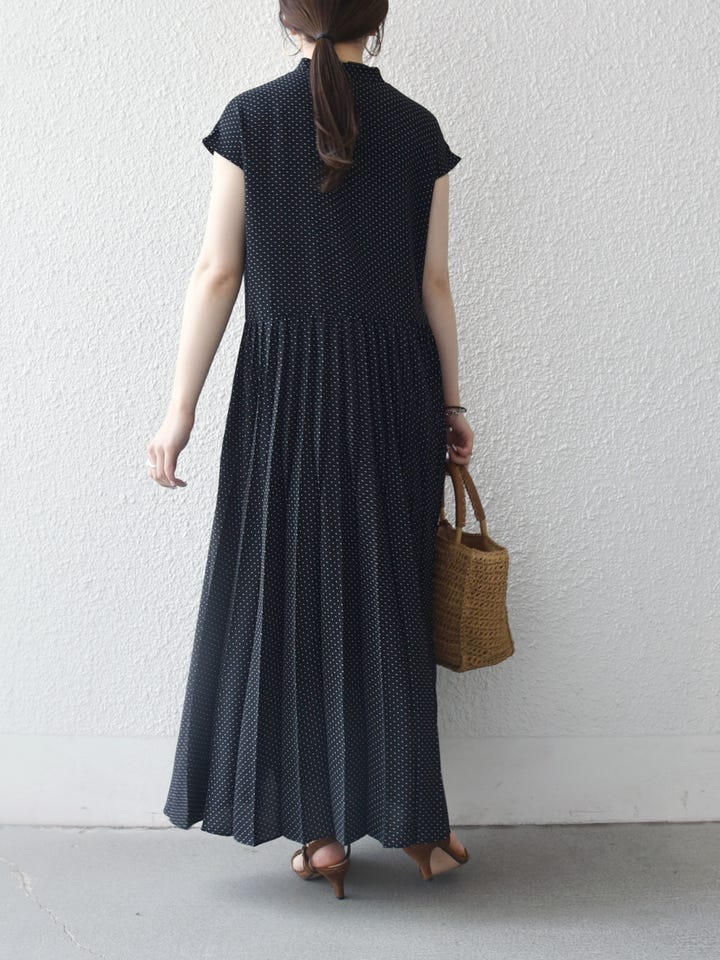 着用アイテム:SHIPS any:〈手洗い可能〉ドット バンドカラー フレンチ プリーツ ロング ワンピース