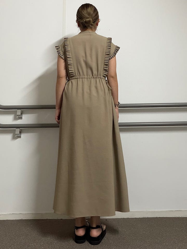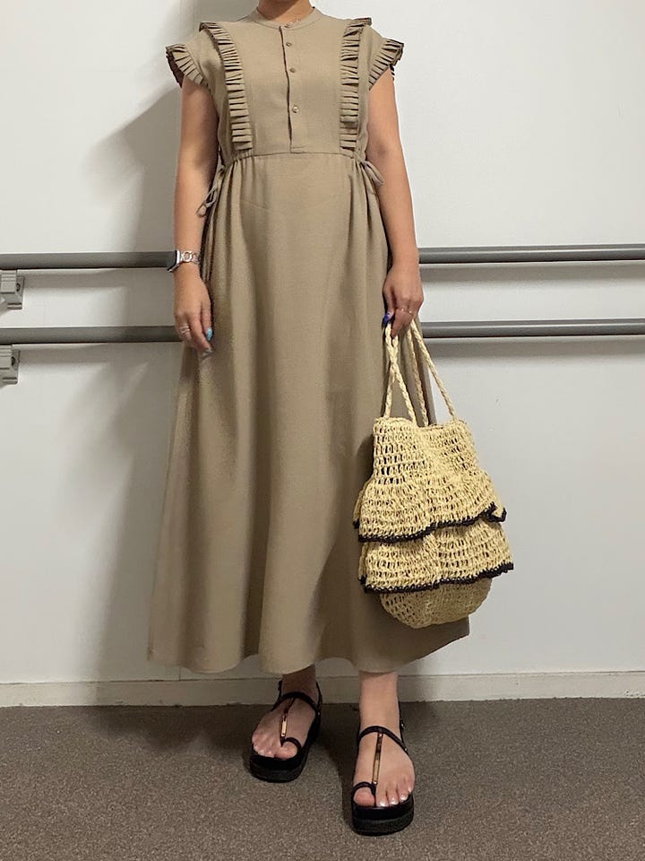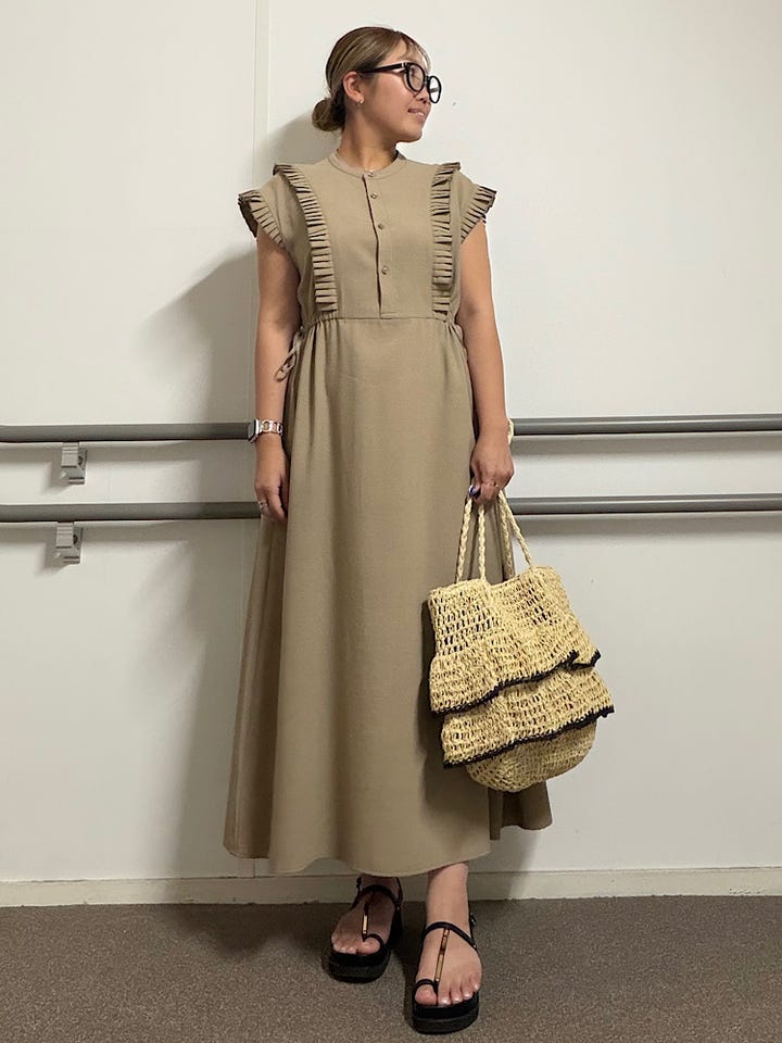 【素材感・着心地】プリーツデザインが女性らしさを引き立ててくれます。ウエストのリボンを絞るとフィット感が出てより女性らしい印象を深めます◎もちろんゆるめて落ち感のあるスタイルも楽しめます♪