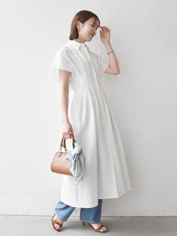 着用アイテム:サッカー フレンチ スリーブ シャツ ワンピース ホワイト