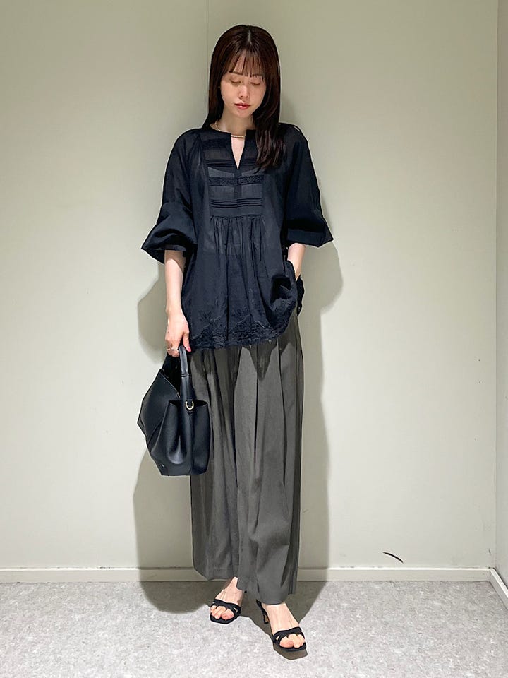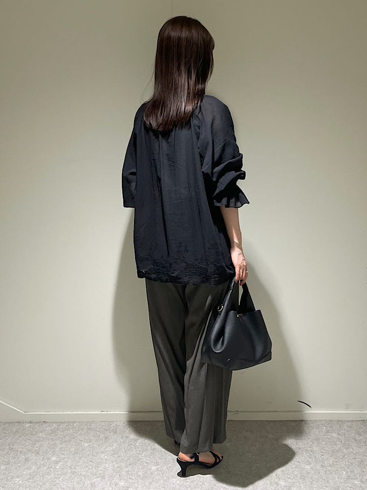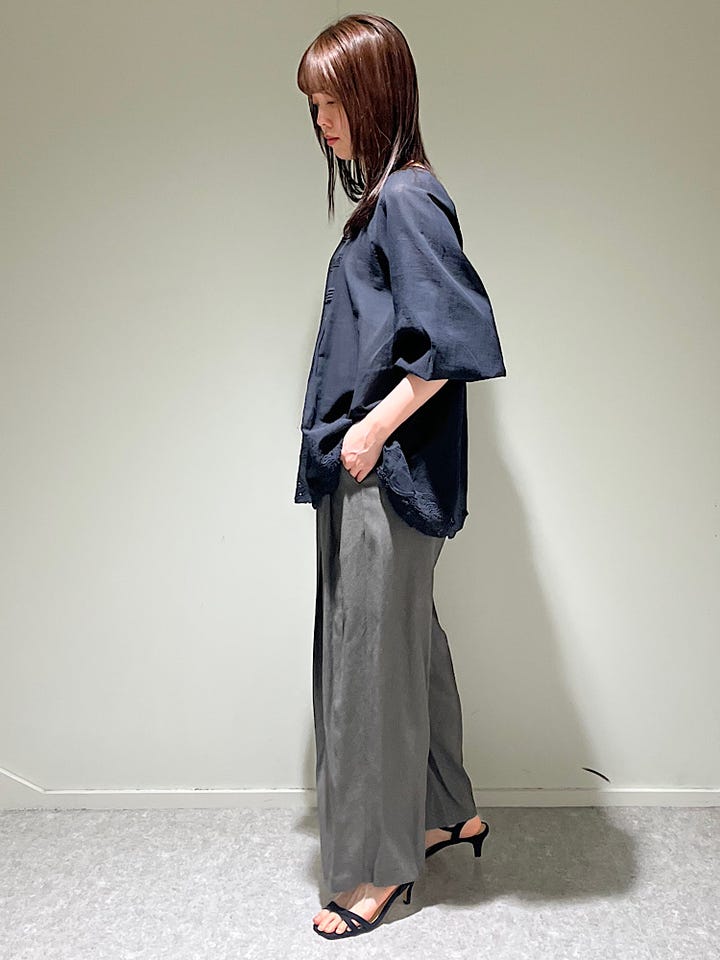 リネン混で清涼感があり着心地もかなり軽かったです!タックがしっかり入っているので一枚でも様になり映えるパンツです。セミワイドで足先にかけてやや細くなるシルエットなので太めなパンツに馴染みない方にも挑戦しやすいと思います!