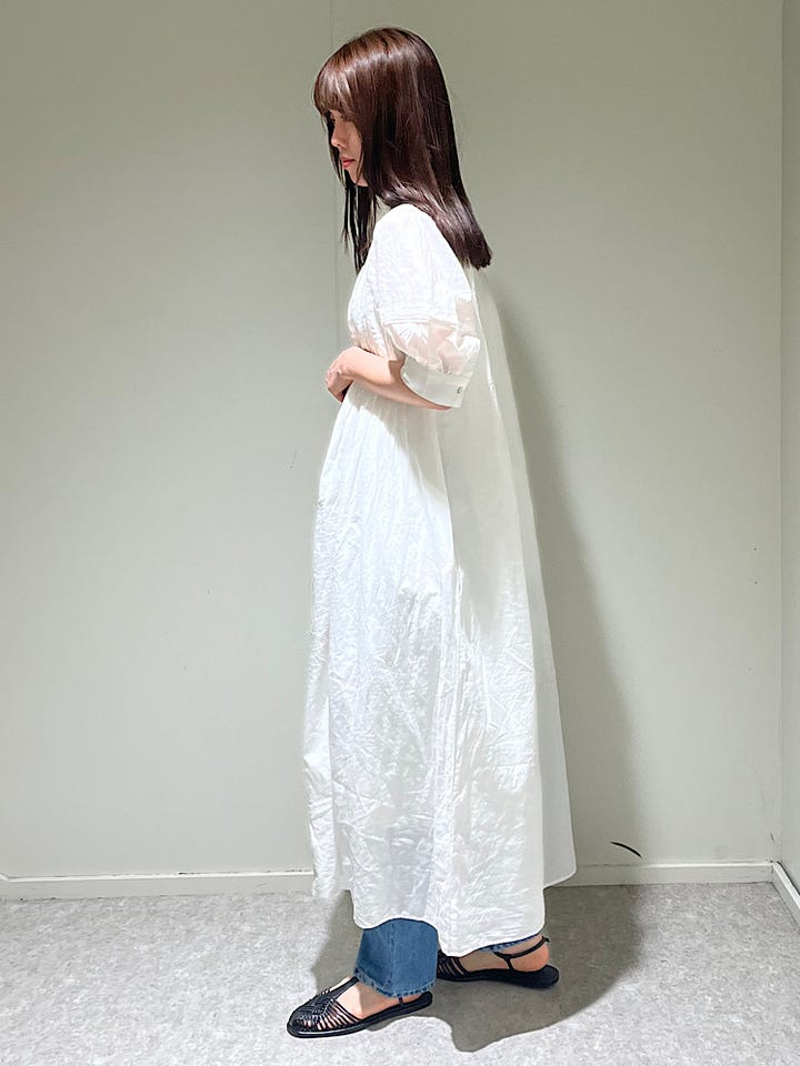 デコルテにレースをあしらった上品なコットンワンピースです!着丈は165cmでふくらはぎ下くらいでした。パンツとのレイヤードなど柄ものパンツなどと重ねて着るのも可愛いです!インナーにキャミワンピースも付属でついているので一枚で着る時も透けを気にせず着用できます!