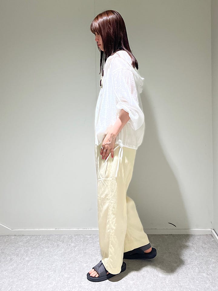 ストレートシルエットでラインが綺麗なワイドパンツです!膝上まで裏地付きなので透けも気にせず着れました。ヒップラインも拾いずらい仕様なのでトップスをいんしても着やすいです!柔らかい色味の展開も多いので淡いカラーでまとめたスタイリングがおすすめです。