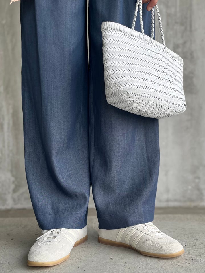 〔38〕〈接触冷感/UVカット/手洗い可能〉スマート イージー デニム ライク タック パンツ