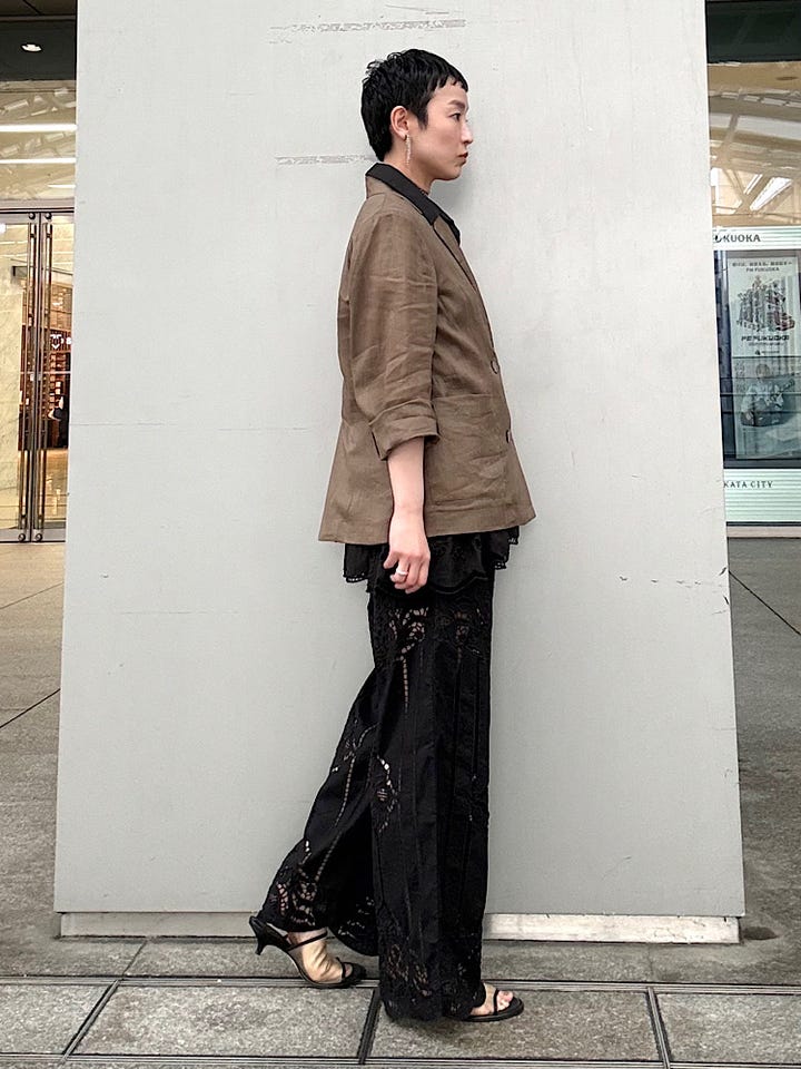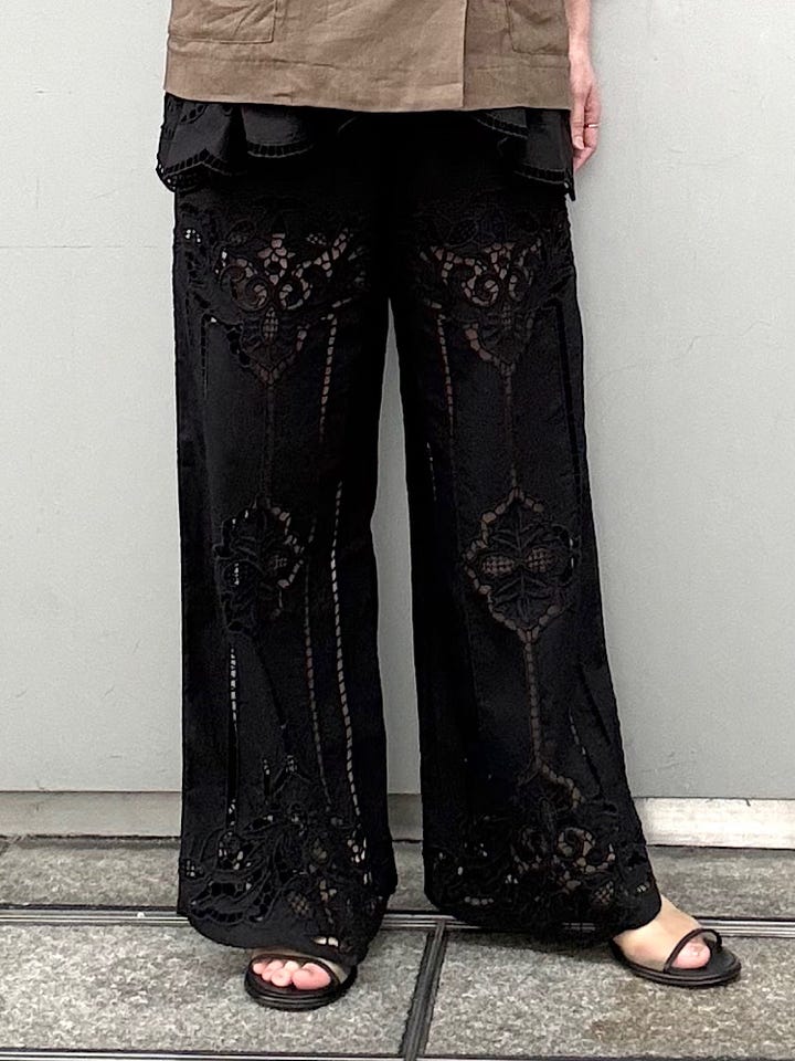 着心地:PROTAGONISTAのレースパンツです。コットン素材で肌離れしてくれます。肌に張り付く感じが無いので涼しく快適に過ごせます。足元のカットワークレースが可愛く、レイヤーしてチラ見せしても可愛いデザインです!