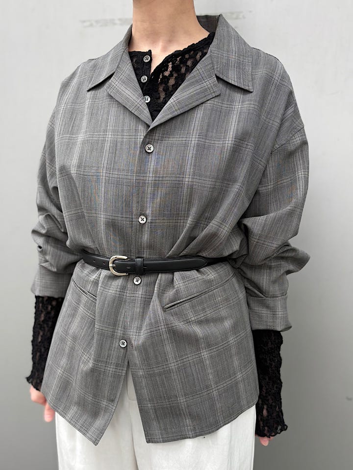 着心地:Emie Paloのサマーウールジャケットです。透け感のある薄地で、丁度今の季節に羽織りやすい1着です。クラシックなチェック柄が大人カジュアルに引き立ちます。