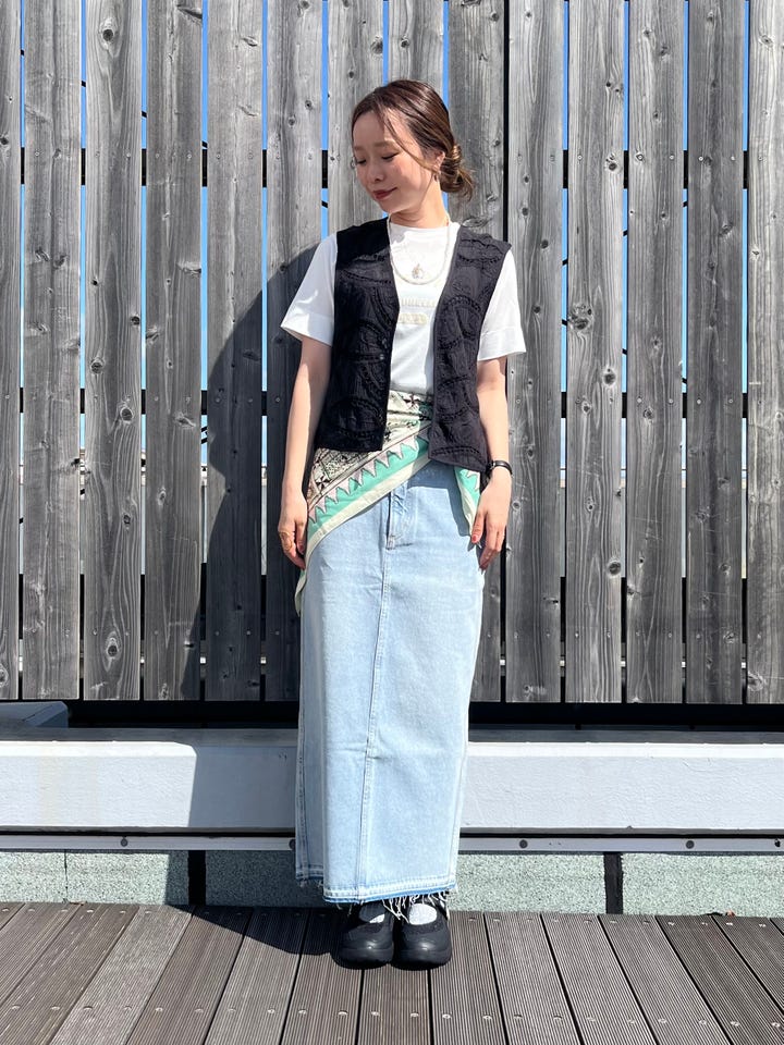 ウエストに余裕があるので腰履きにしてくるぶし丈で着用も可能です◎