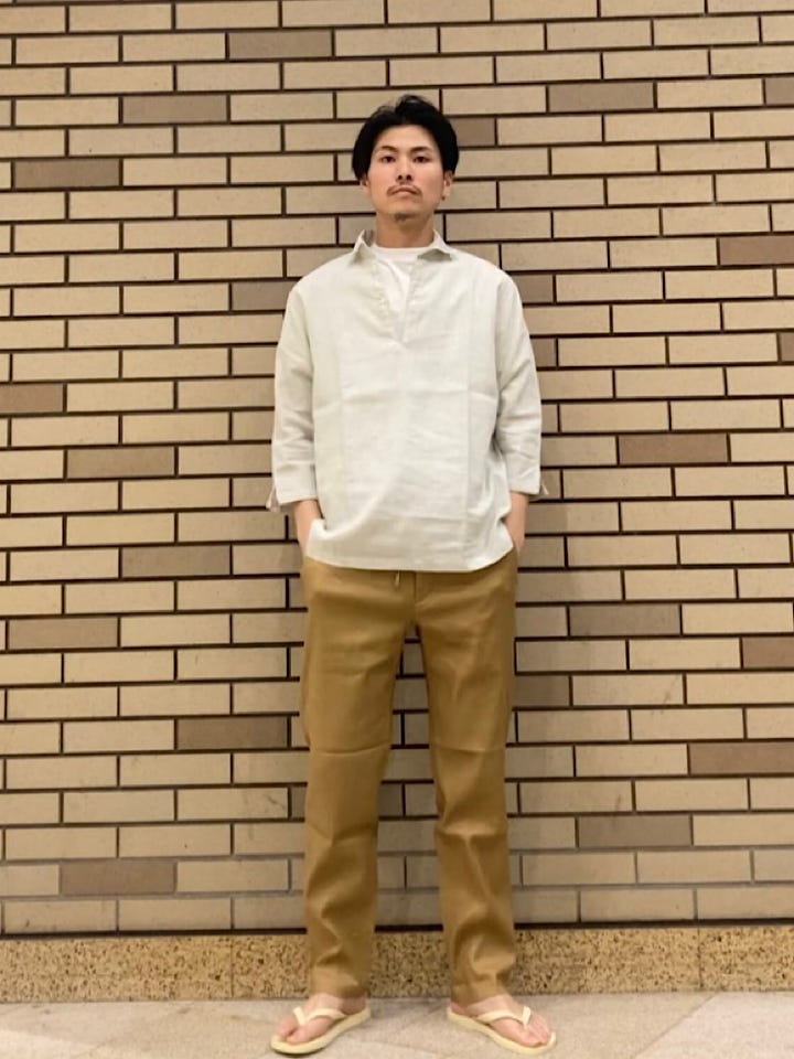 サイズ感:ややゆったり目、綺麗目にもカジュアルにも着用しやすいサイズ感です。