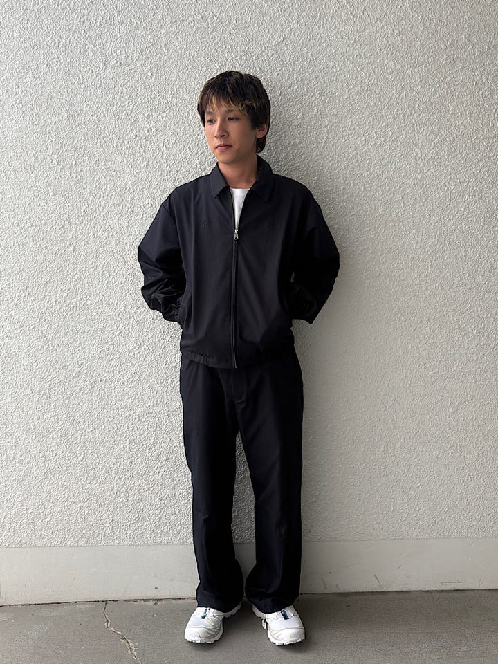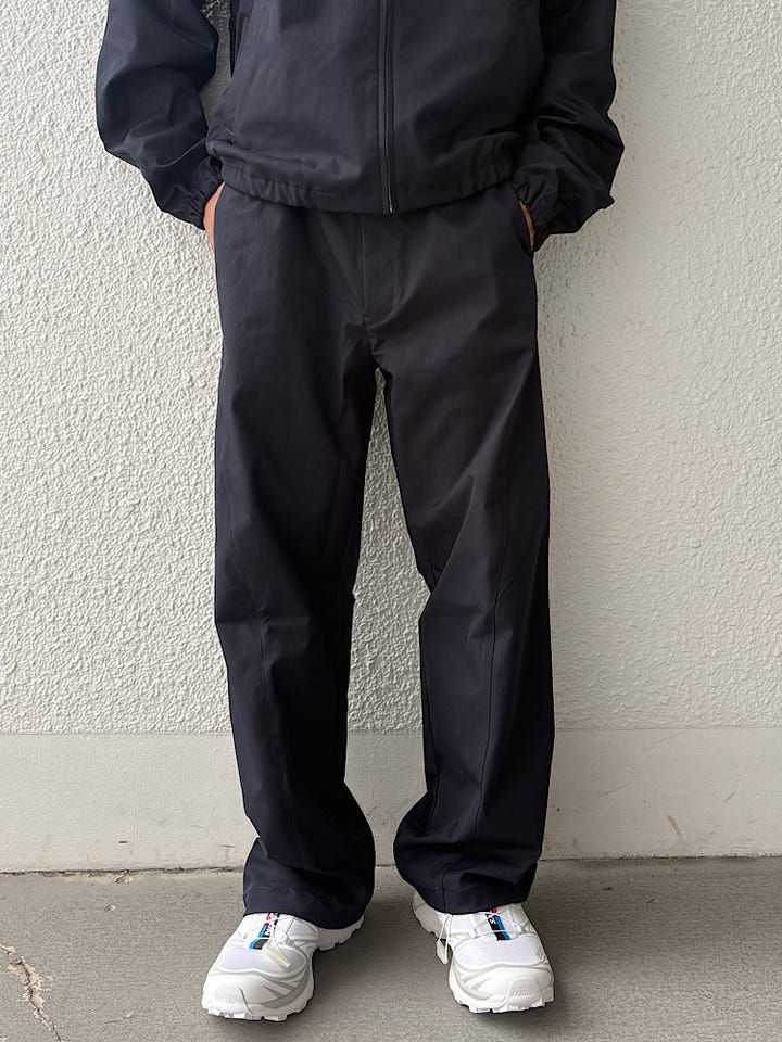 素材感/着心地:ストレートシルエットの軽めの生地で程よい光沢があるので、スポーティにも綺麗目のスタイリングでも合わせやすい