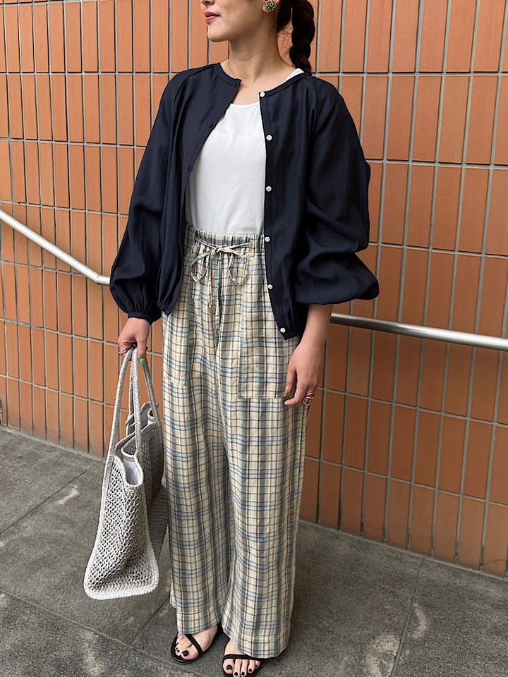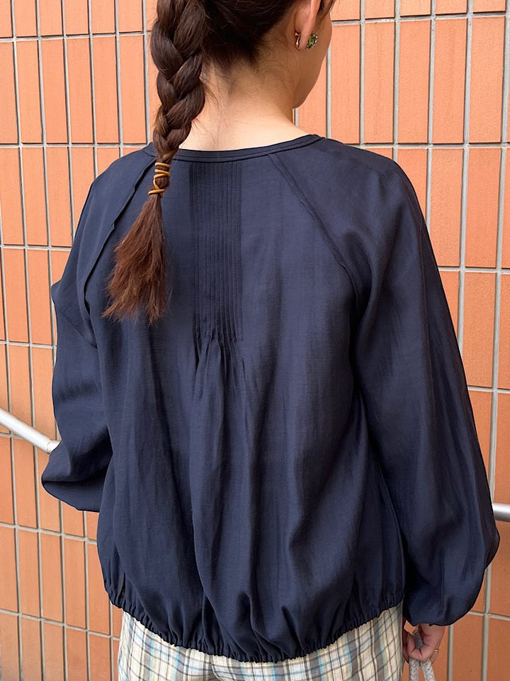 素材感・着心地: 程よい透け感で、女性らしいデザインです。トップスとしても、羽織としても活躍してくれそうな一枚。