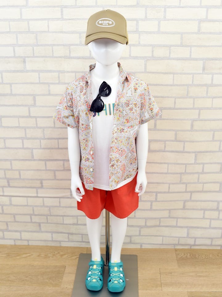 〔120〕SHIPS KIDS:100〜130cm / リバティ プリント 半袖 シャツ