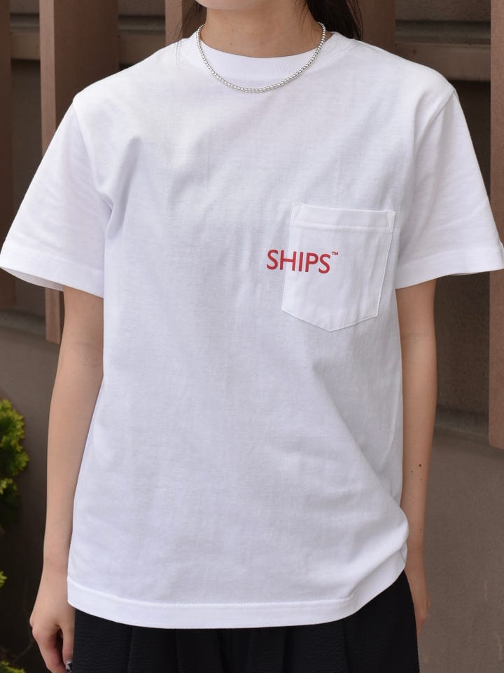 〔SMALL〕【WEB限定】SHIPS: SHIPSロゴ プリント ポケット Tシャツ