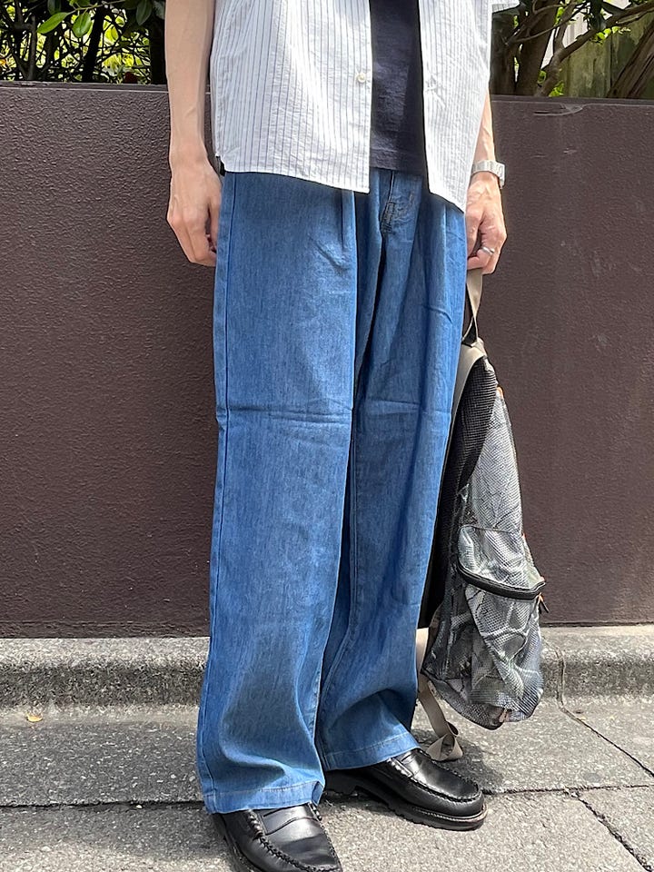 〔MEDIUM〕SHIPS any: ライト メッシュ デニム 1タック リラックス パンツ (セットアップ対応)◇