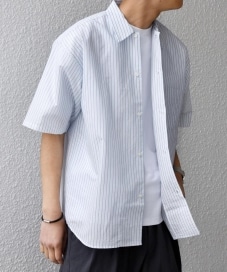 〔MEDIUM〕SHIPS any: JAPAN MADE ブルー ストライプ/ソリッド レギュラーカラー 半袖 シャツ◇