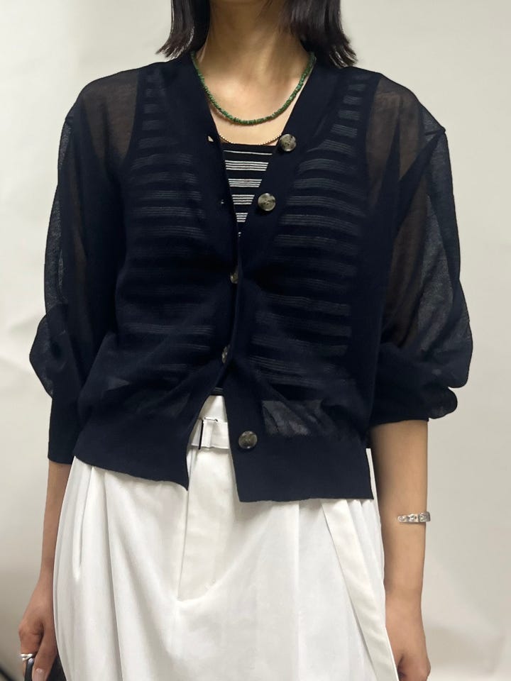 〔ONE SIZE〕《一部追加予約》〈手洗い可能〉麻混 シアー Vネック カーディガン