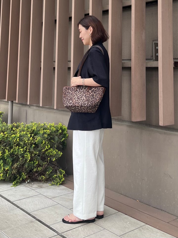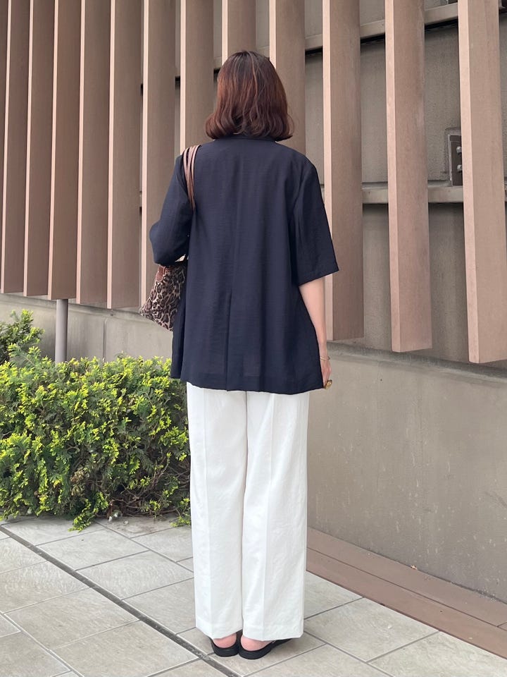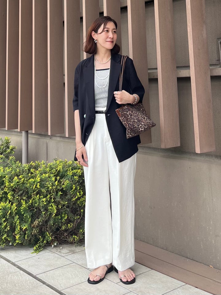 サイズ感:くるぶしも隠れる長めの着丈。幅はセミワイドで脚のラインを拾わない