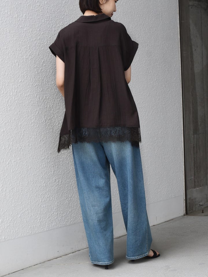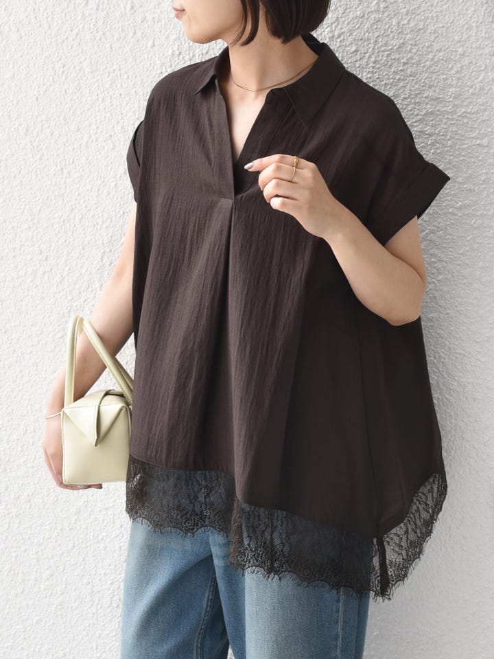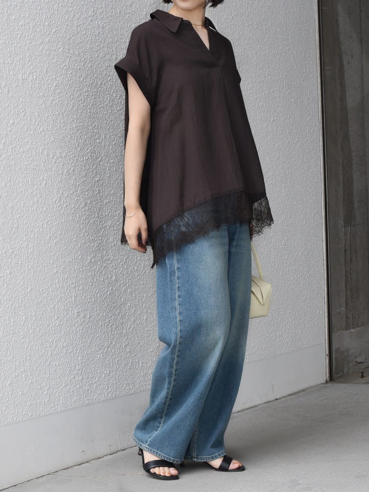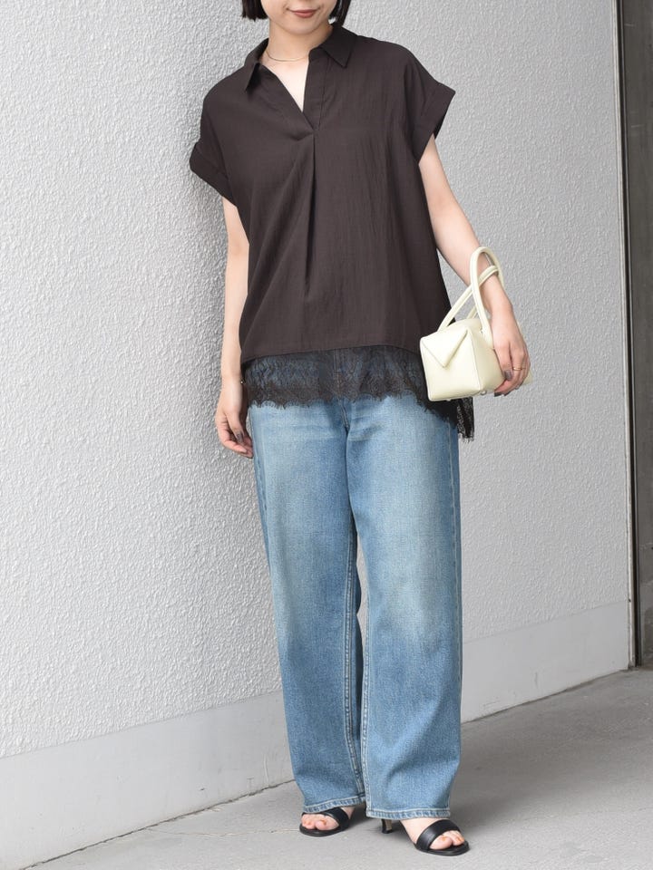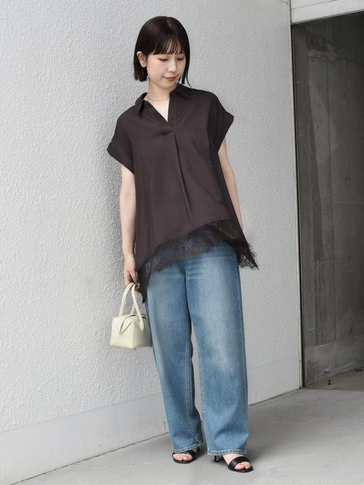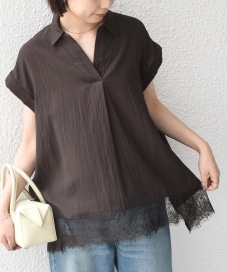着用アイテム:〈手洗い可能〉ヘム レース スキッパー ブラウス◆
