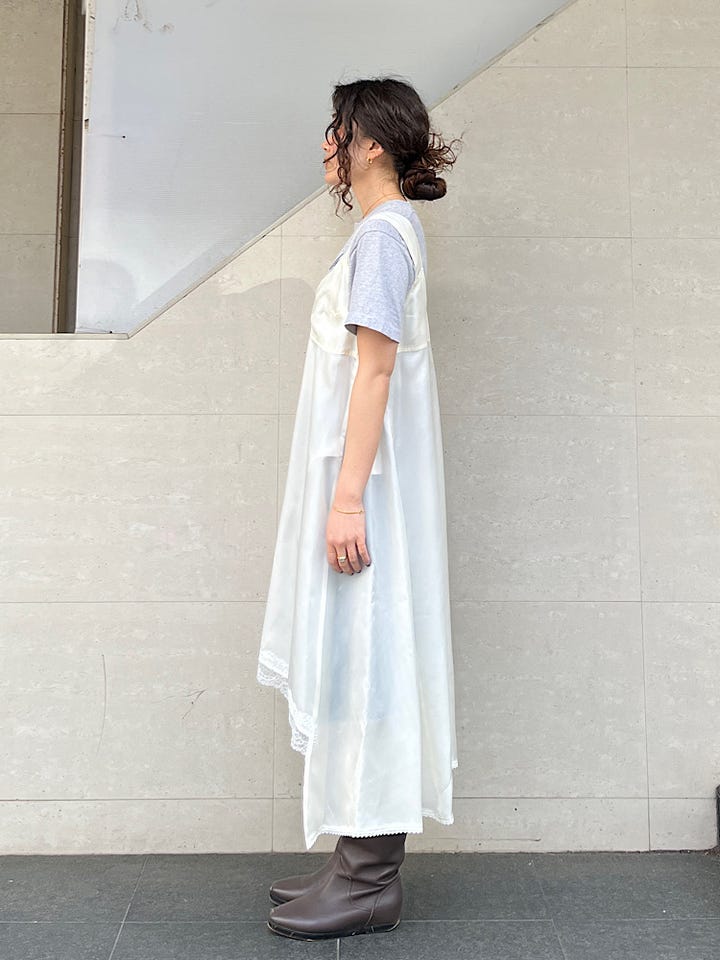 着心地:オチ感とツヤ感のある一枚でオシャレなワンピース。綺麗め、カジュアルどちらでも使って頂けるようなデザインになっています。
