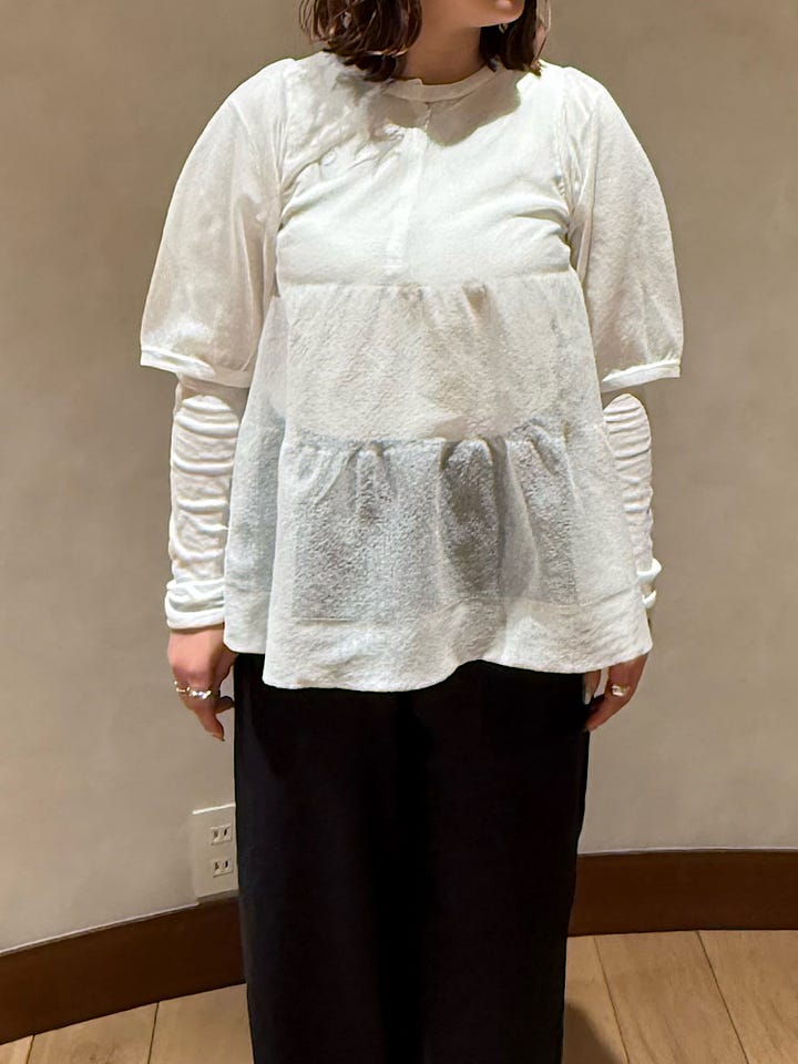 〔ONE SIZE〕〈手洗い可能〉麻混 シアー ティアード ショート スリーブ プルオーバー