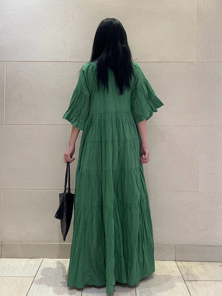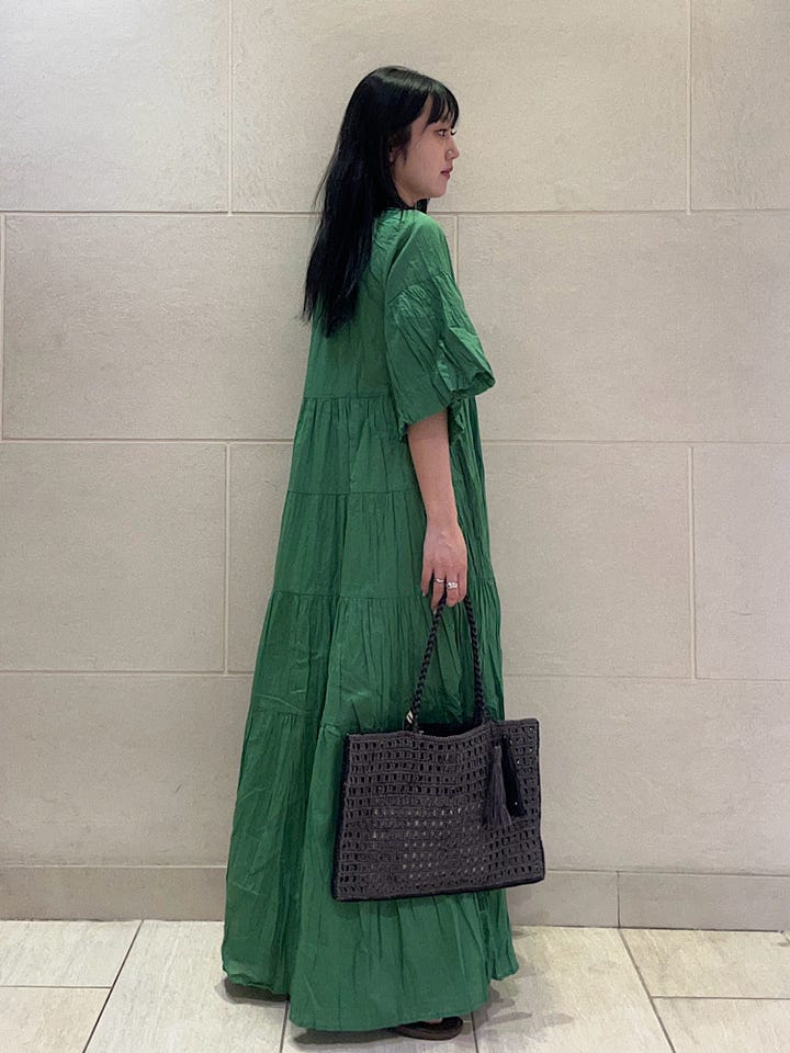 素材感/着心地:軽やかでさらっとした着心地です。透け感はあまり気にならないですが、気になる方はペチコートやパンツを履くのがおすすめです。