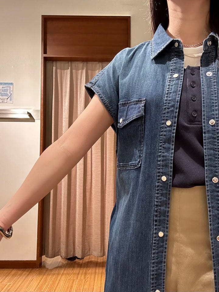 ワンピースとしてもロングジレとしても使える2wayワンピースです。広めのフレンチスリーブで二の腕カバーしてくれます。