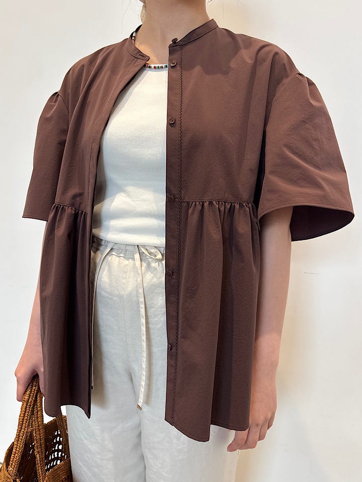 〔ONE SIZE〕〈接触冷感 / 撥水加工〉TEXBRID(R) タフタ ショート スリーブ 羽織 シャツ
