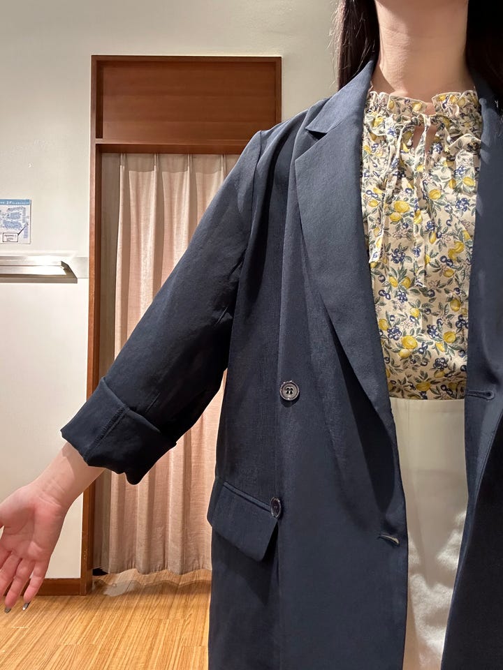 シアージャケットで裏地がなく、サラッと羽織れます。