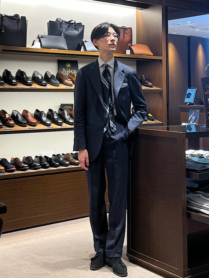 穏やかにトラッドな空気感を漂わせながら、日常使いに適した配色と軽い締め心地が特徴です。