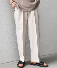 〔MEDIUM〕SHIPS any:〈洗濯機可能〉リネン混 2プリーツ リラックス ワイド テーパード パンツ◇