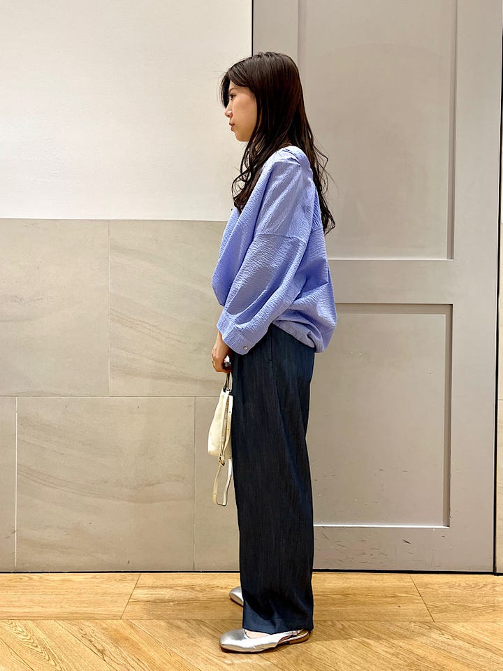 手首がみえるくらいの袖丈です。全体的にゆるっとしたサイズ感なので、暑い時期でも快適です!