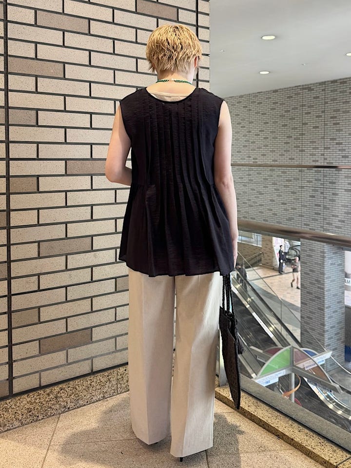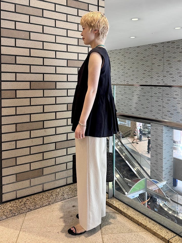 ワイドシルエットなので体のラインを拾いません。
