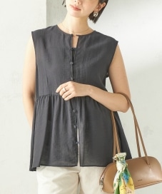 〔ONE SIZE〕〈手洗い可能〉シルク混 シアー 2WAY ノースリーブ ブラウス