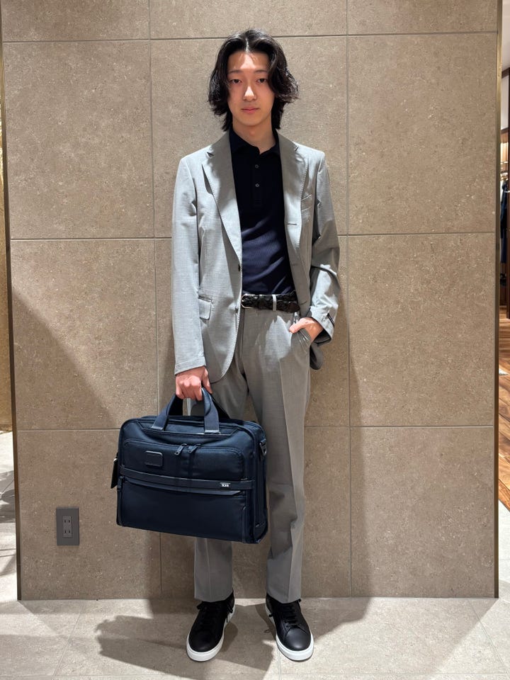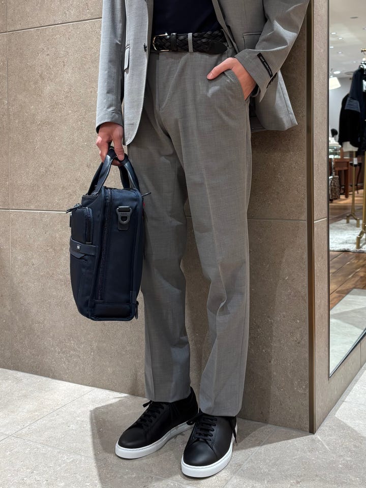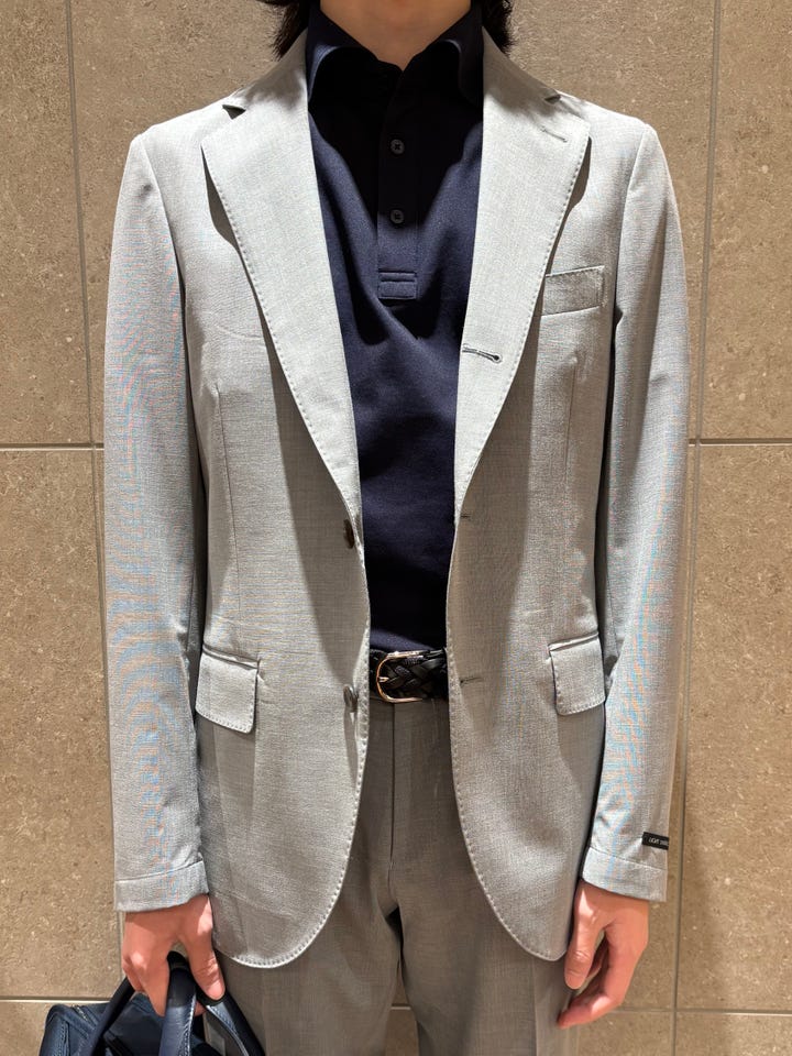 着心地 : 非常に軽量かつ、伸縮性がものすごくあり着心地が良い。これからのシーズンのジャケパンスタイル、ネクタイを締めたスタイルにもおすすめの1着です。
