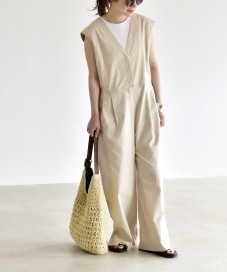 〔ONE SIZE〕quaranciel:〈洗濯機可能〉Vネック ワイド オールインワン