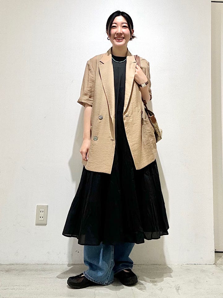 着心地:ボリュームも程よく着やすいです。154cmの私でふくらはぎ丈くらいなので1枚でも着られます!