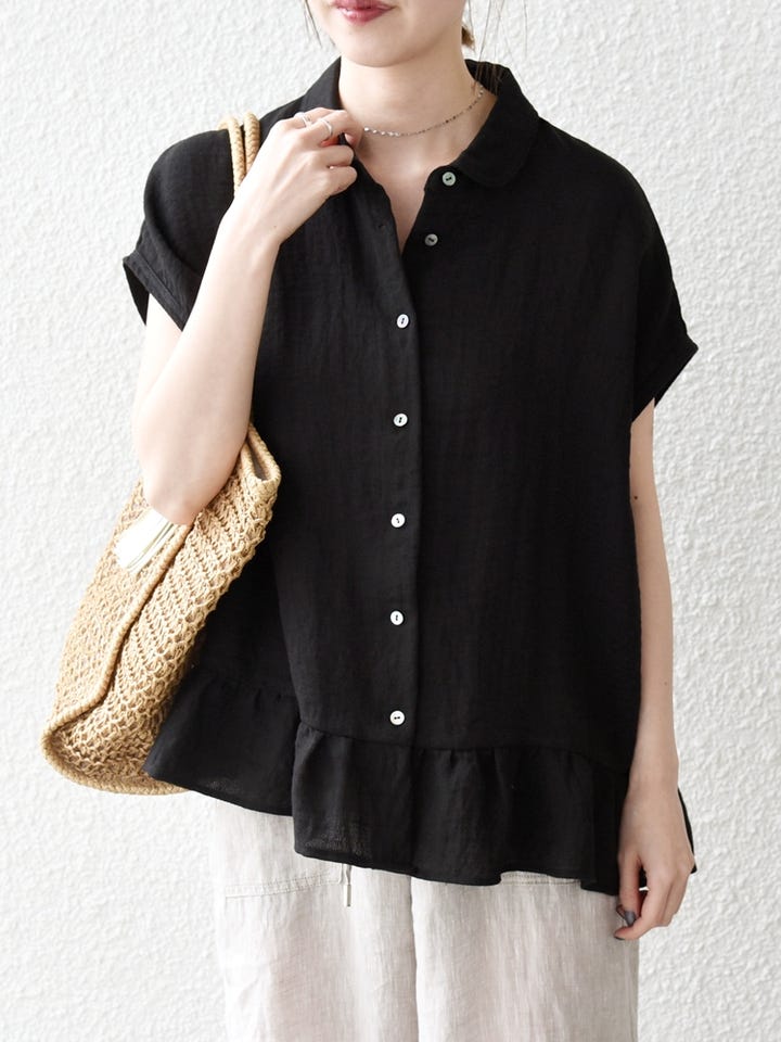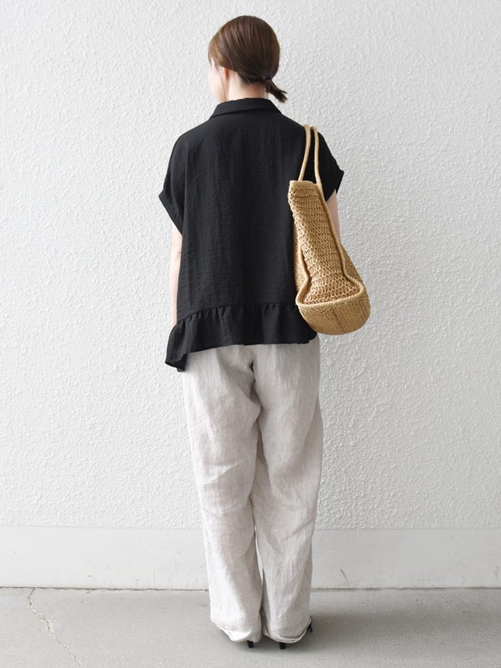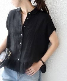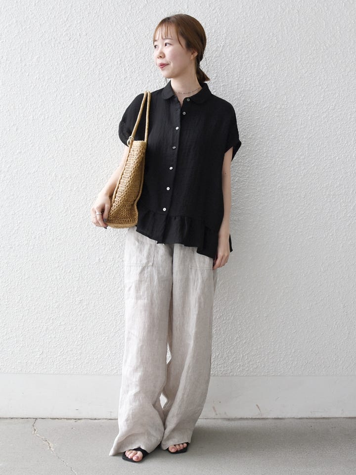 着用アイテム:SHIPS any:〈洗濯機可能〉カラミ フレンチ スリーブ ペプラム シャツ ブラウス ブラック