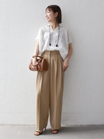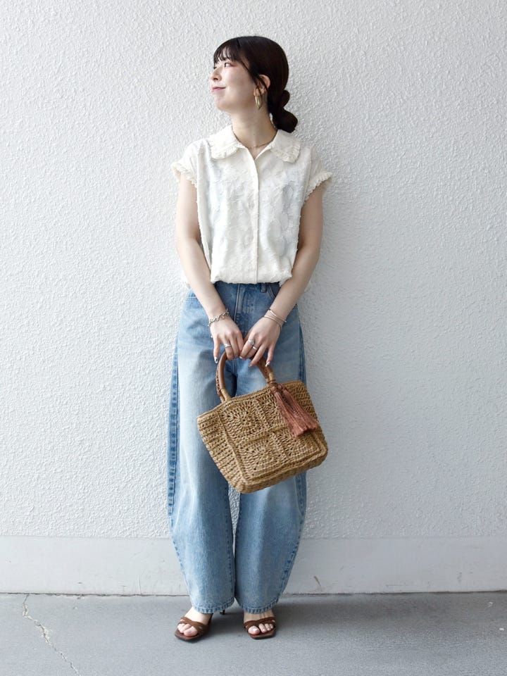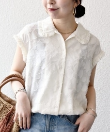 着用アイテム:SHIPS any:〈洗濯機可能〉カット ジャカード ドロスト フレンチ スリーブ シャツ ブラウス