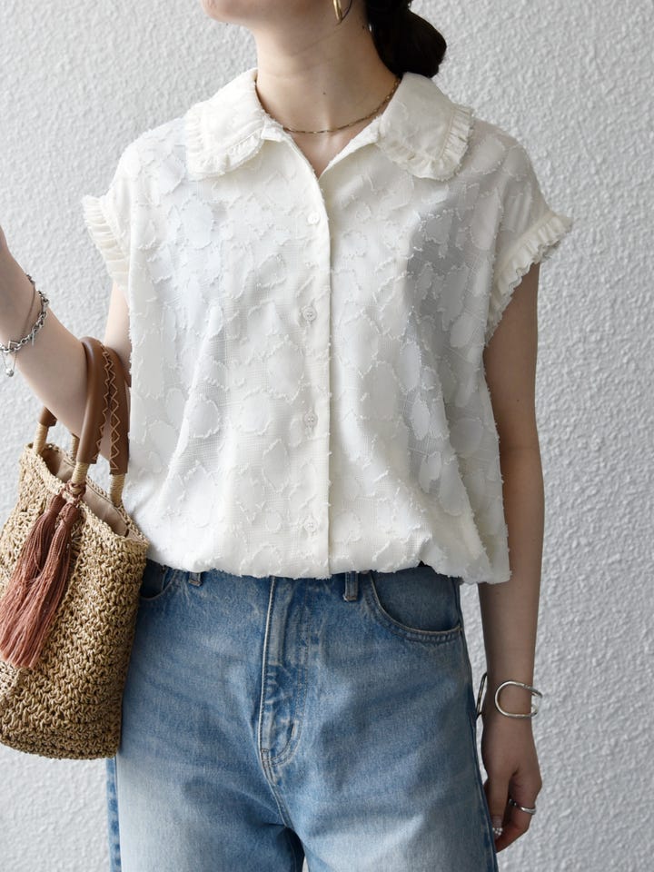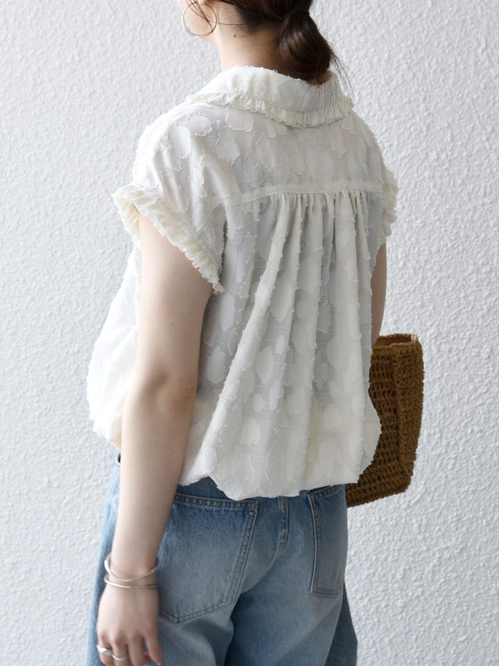 〔ONE SIZE〕《予約》SHIPS any:〈洗濯機可能〉カット ジャカード ドロスト フレンチ スリーブ シャツ ブラウス