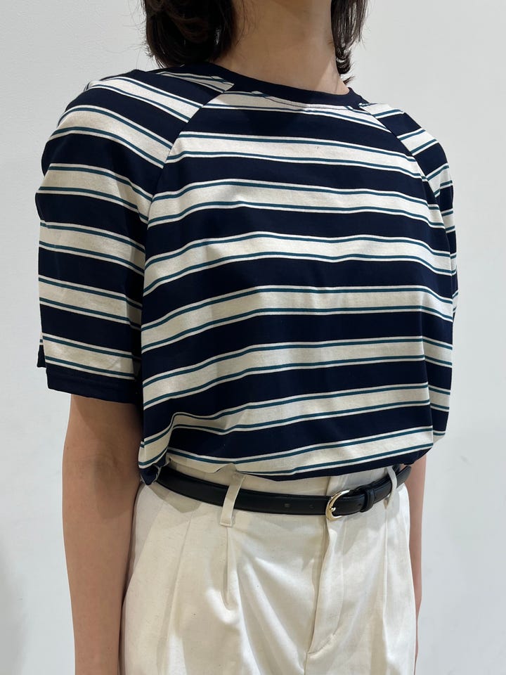 〔ONE SIZE〕〈手洗い可能〉ボーダー / ソリッド 袖ギャザー ショートスリーブ プルオーバー